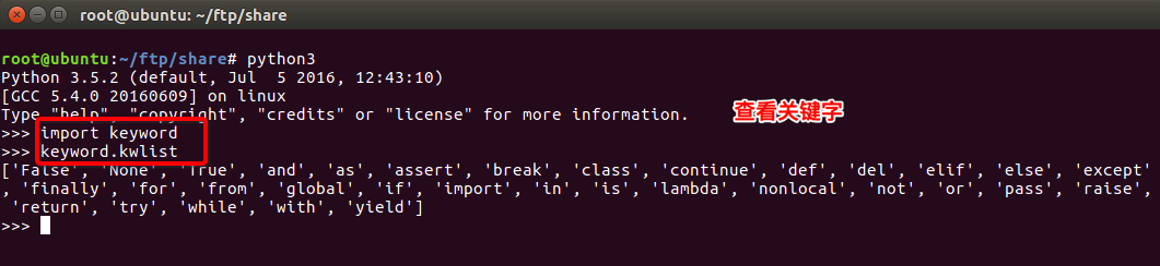 关键字,是python已经使用的了,所以不允许开发者自己定义和关键字相同的名字的标示符