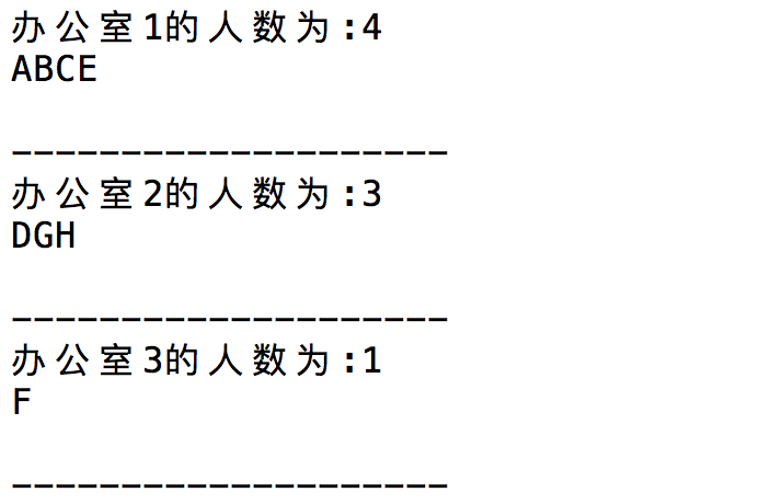 print('办公室%d的人数为:%d'%(i,len(tempNames)))