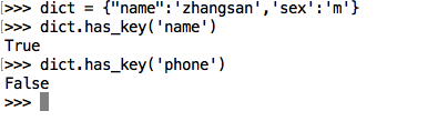 dict.has_key(key)如果key在字典中,返回True,否则返回False
