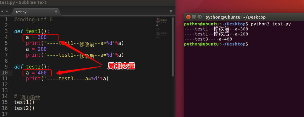不同的函数,可以定义相同的名字的局部变量,但是各用个的不会产生影响